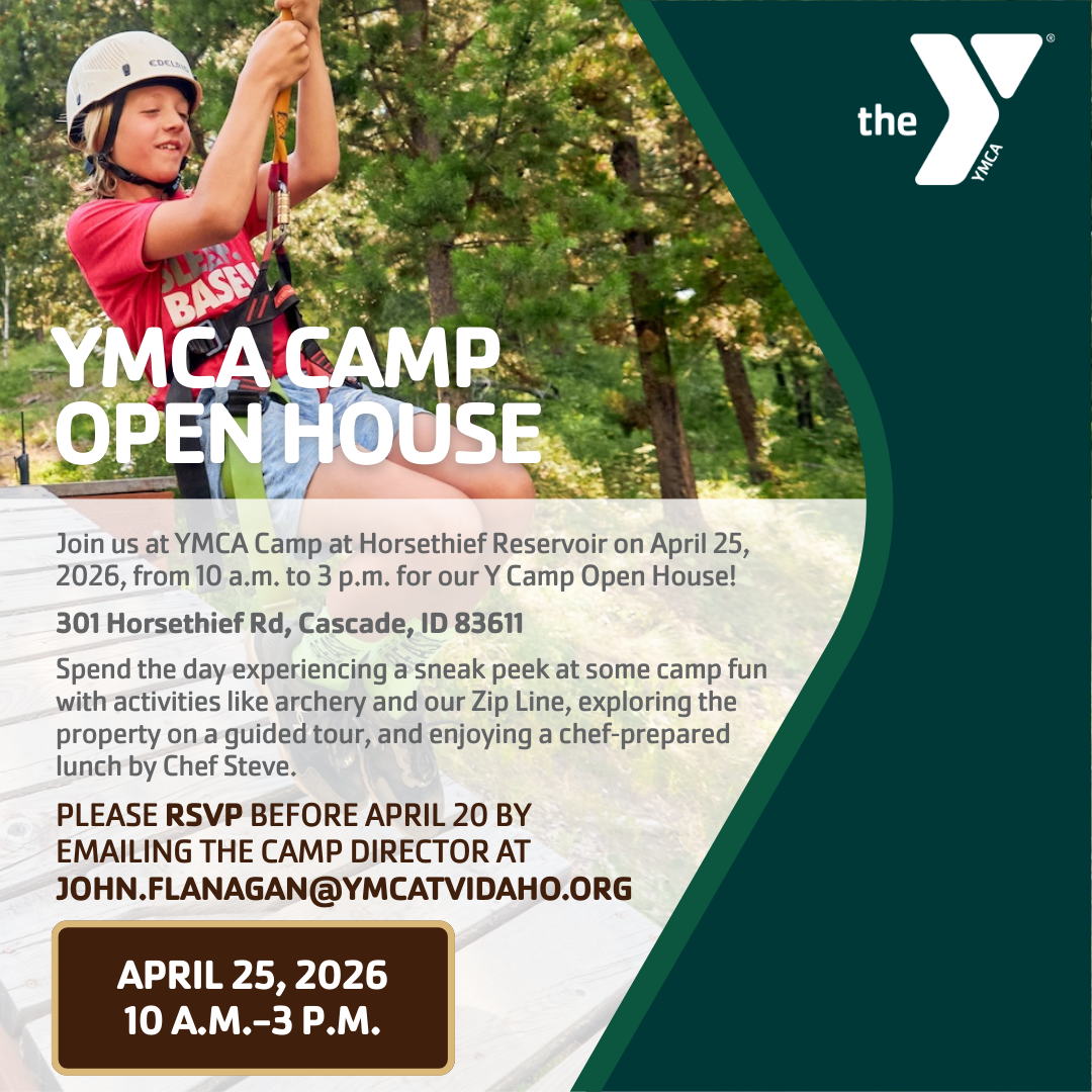 Join us at YMCA Camp at Horsethief Reservoir on April 25, 2026, from 10 a.m. to 3 p.m. for our Y Camp Open House at 301 Horsethief Rd, Cascade, ID 83611 Spend the day experiencing a sneak peek at some camp fun with activities like archery and our Zip Line, exploring the property on a guided tour, and enjoying a chef‑prepared lunch by Chef Steve. Please RSVP before April 20 by emailing the Camp Director at john.flanagan@ymcatvidaho.org